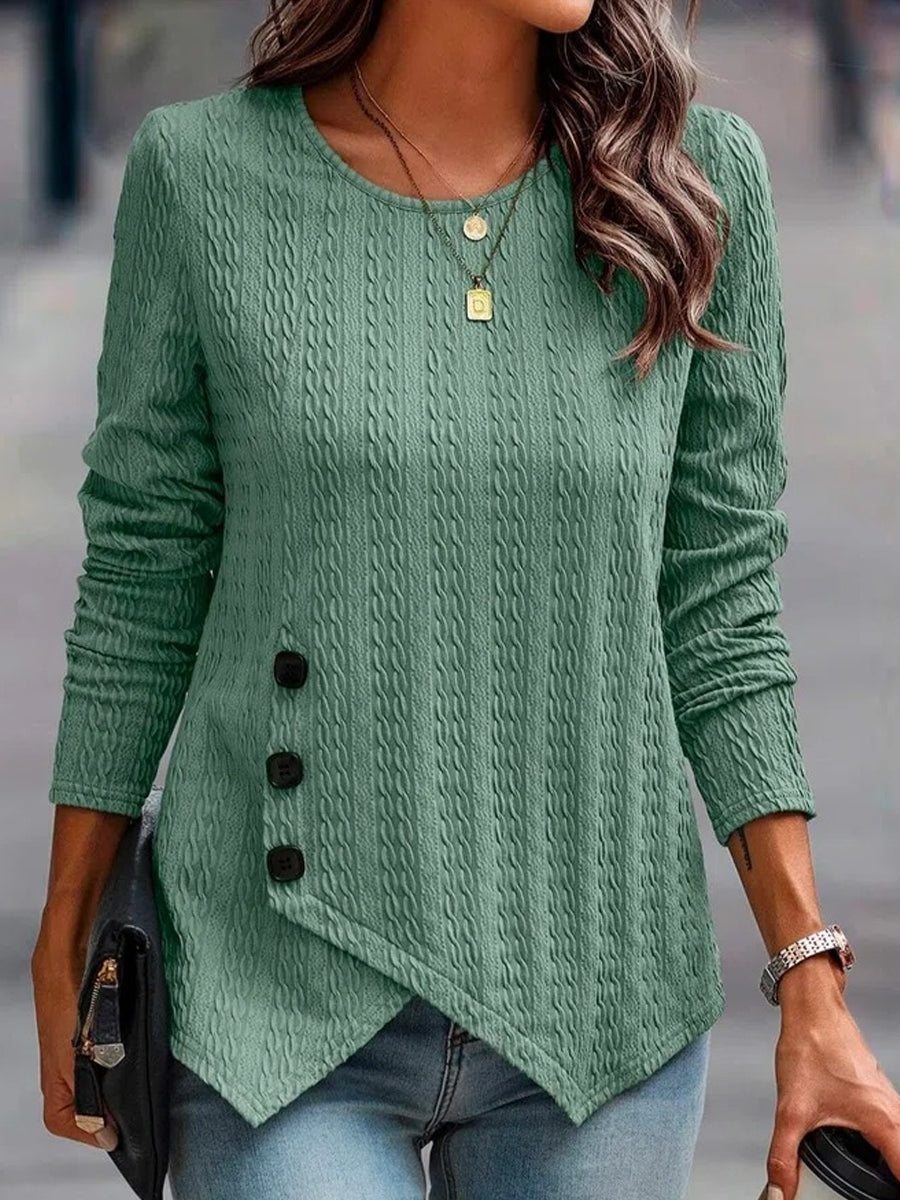 Casual Solid Color Long Sleeve Crew Neck Button T-Shirt